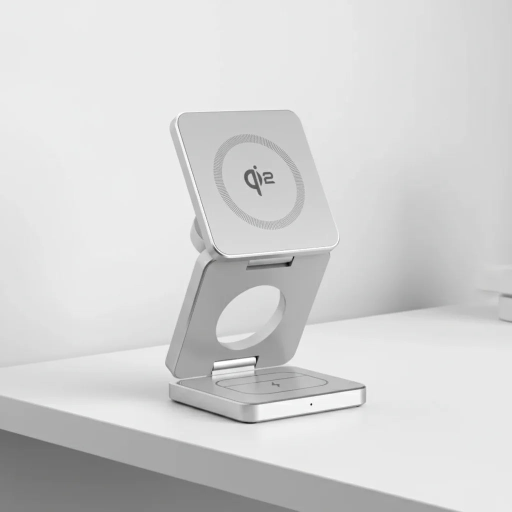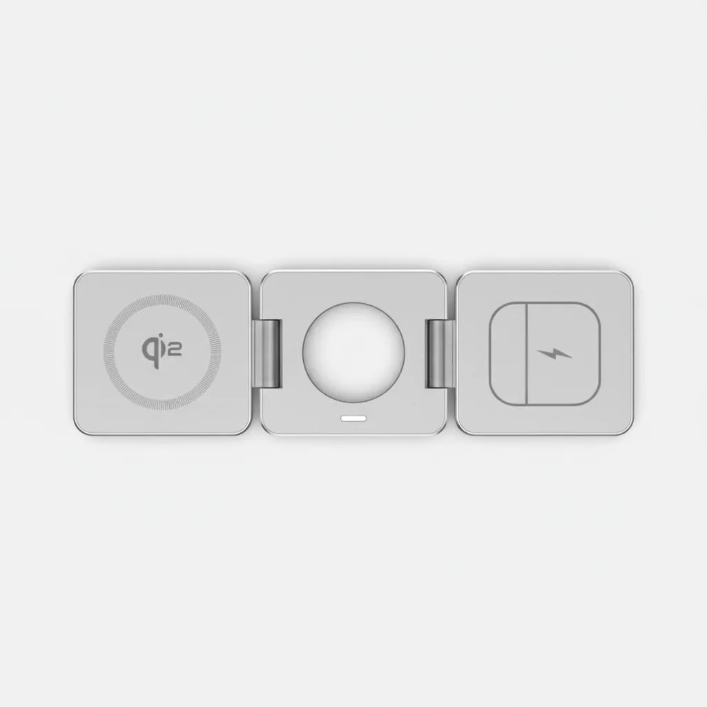 Elevate your productivity with a charger designed for life in motion. Its minimalist, foldable design ensures your iPhone, Watch, and AirPods are always powered, without clutter. An indispensable companion for every professional.